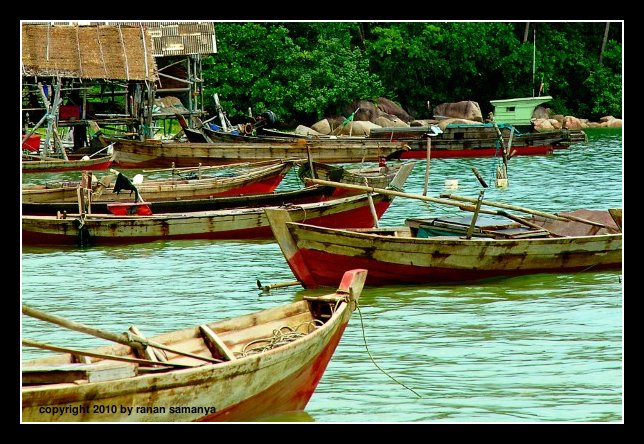 One afternoon during high water at Segiling Village, northern Bintan. The boats are mostly single manned with a small generator in the center to power the little propeller.