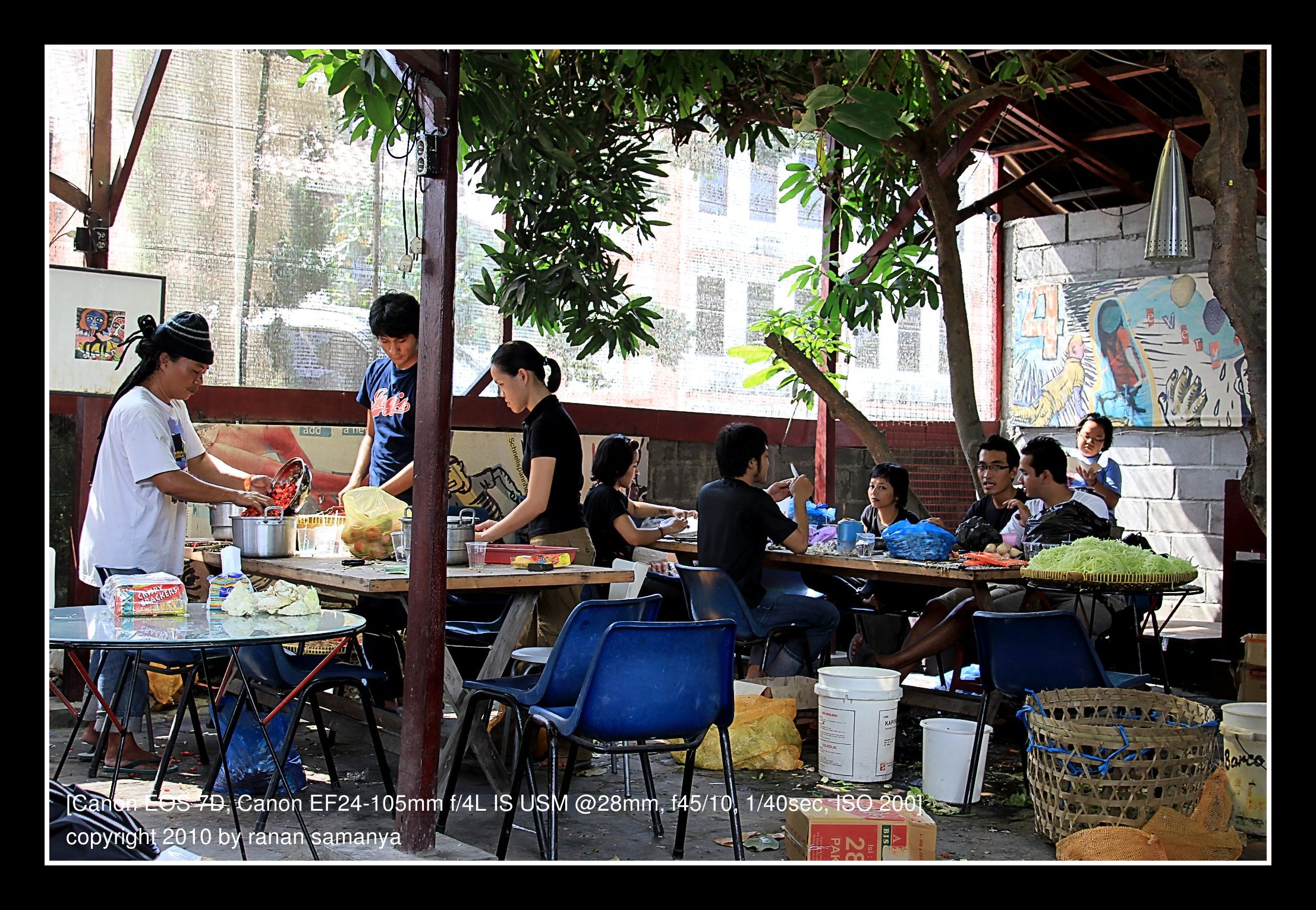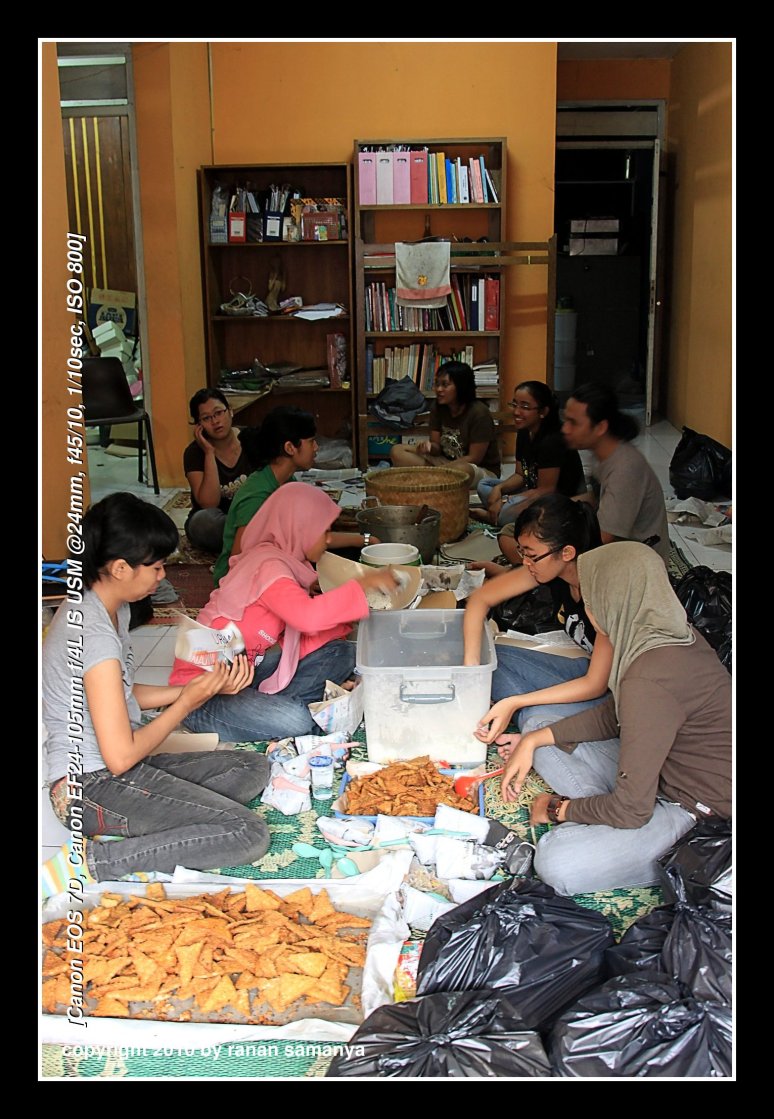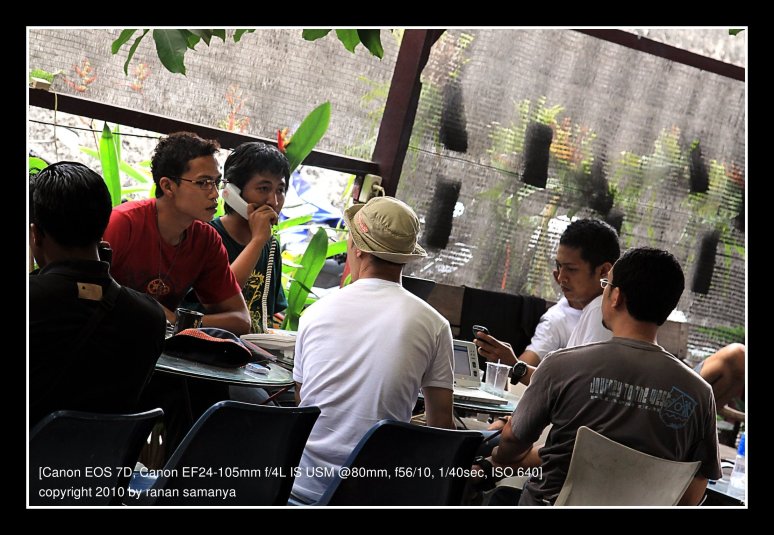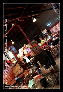 Principally, the whole cafe was converted, from the parking lot until the very end backyard. The main cafe area was set as a logistic area. At first pak Yudhi, big boss, was also stationed here, but later he needed to be shifted out as the logistics grew. Chairs were all over the place, sit as you wish as long as you were not blocking the way. A relaxing area was also set. This is where we rested, updated our online status, played online games, watched TV, or just killed ourselves (over and over again) with nicotine.