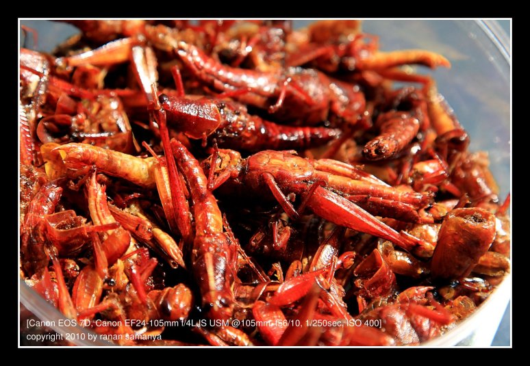 Non-stop food and beverage. Vitamins and plasters (for those amateur choppers). 24h Wifi, a couple of television sets, and nice songs of the eighties and below, sung by the directors and Co. What else would you want in a crisis? Oh, and a hell of a lot of blackberries even though our fingers were cut and bleeding (and one Android) to accompany, together with plenty of power outlets to recharge. Oh again, and I got to taste fried grasshopper delicacy. Yummy!