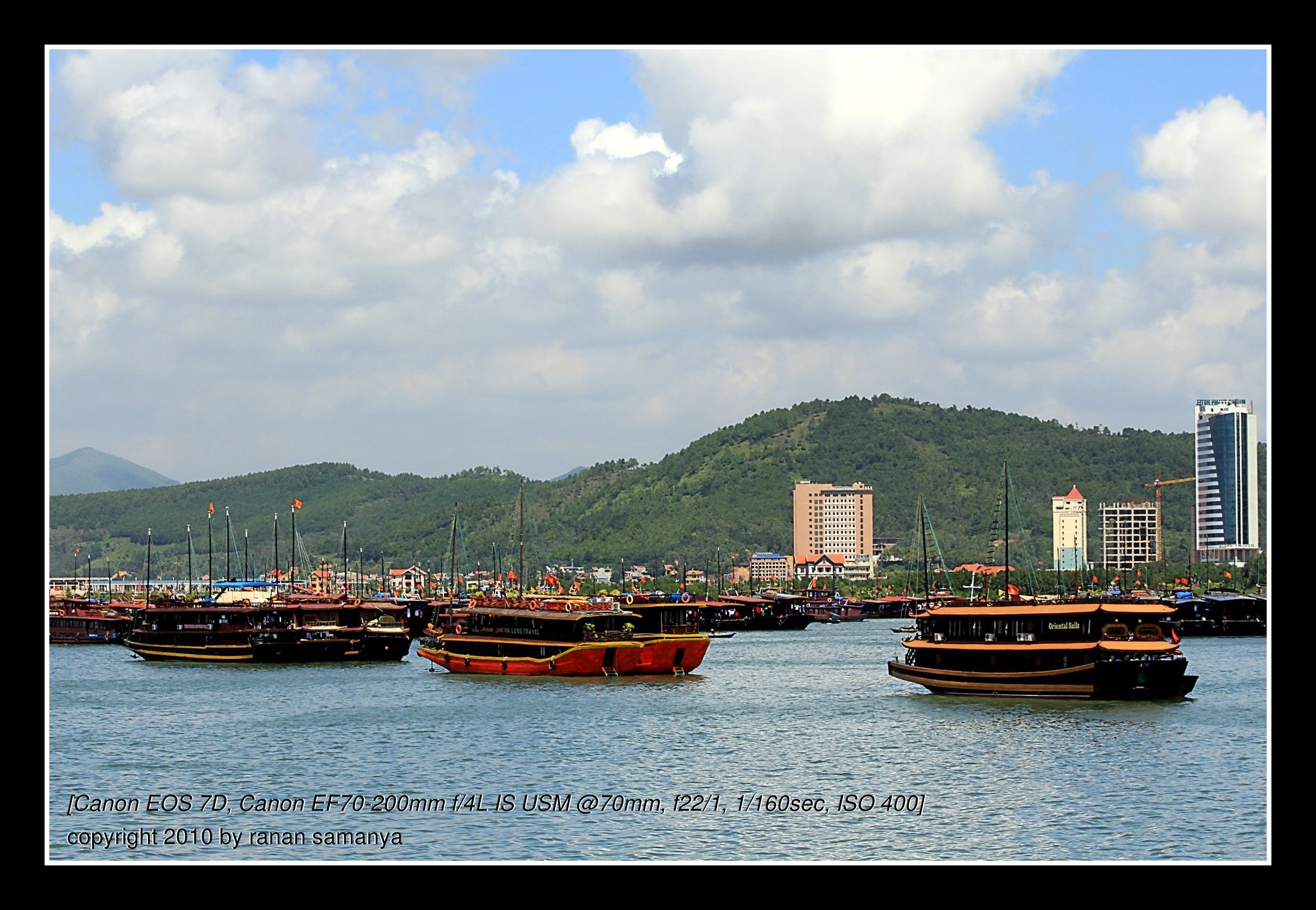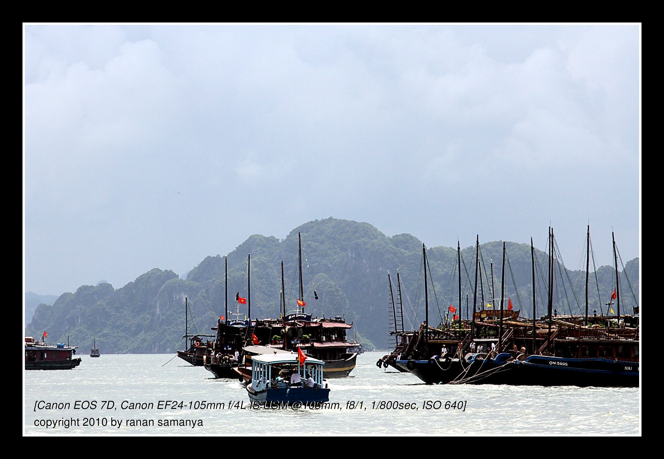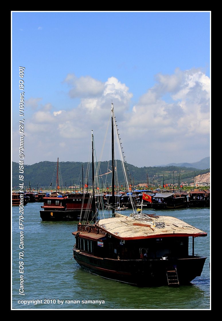 Oh yes, if you travel 170km (that is the distance from Hanoi to Ha Long City) you will be relieved to know that you have reached Ha Long City, Vietnam. You know when you reached this small town by the massive number of junks (ancient Chinese sailing vessel design) anchoring in the bay, with their wooden dark brown colour, red and yellow linings, gold paintings, and the Vietnam flag rising on top of them. The shadow of the limestone karst on the distance will confirm that this is Ha Long bay. We were lucky to visit Ha Long during the off peak season. I can’t imagine the crowd madness of this area when the holiday starts.