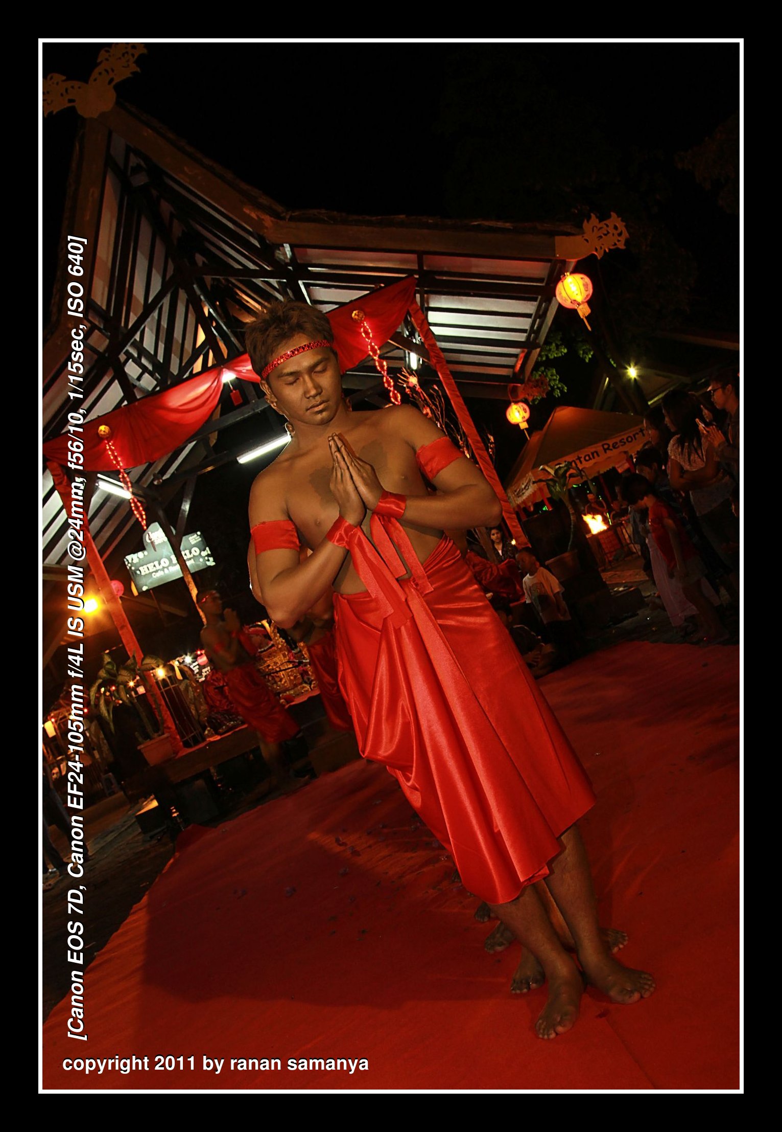 My old 430EZ speedlite flash is not 100% compatible with my 7D. It still correspond automatically with the change in my 24-105mm lens, but will only fire full power. Lucky again, we are in digital era. I was lazy last night to do manual calculation using distance, guide number and all, so I fired up a few test shots before the event here in Bintan Resorts, and adjusted my settings manually.