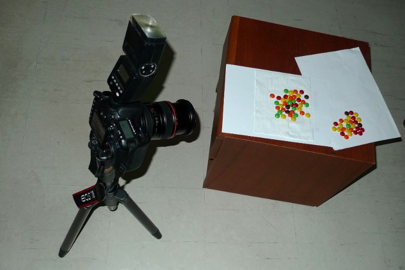 Here’s the setup. All objects were in the exact position as in the final picture (well I might have eaten a few of the candies).
