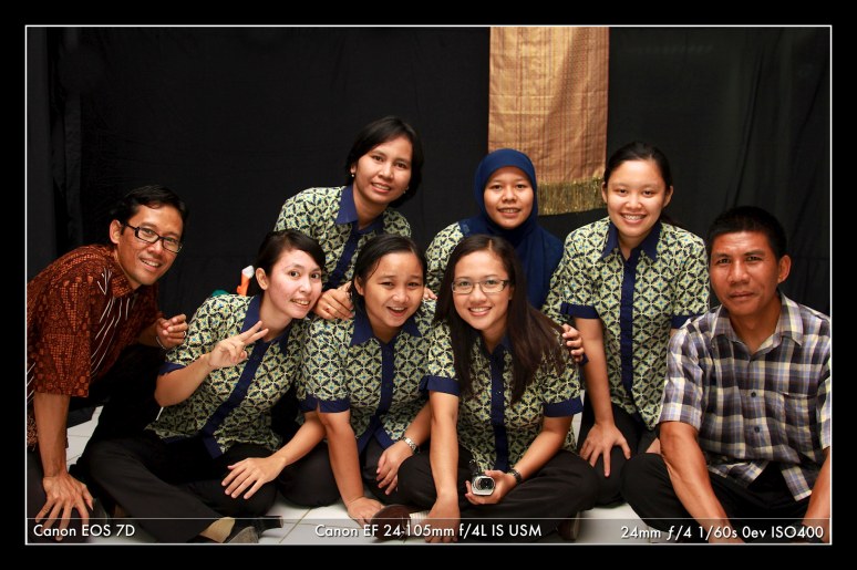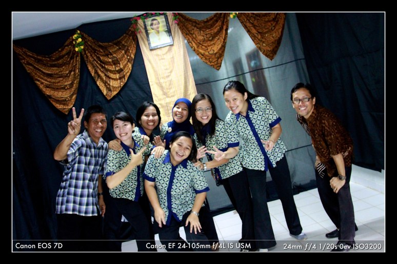 Remember this group of energetic teachers of Tunas Bangsa Primary? The frames from previous post were not taken in a studio. They were taken in the corridor of the school, using seamed backdrop created for the school’s first drama performance a few years back.