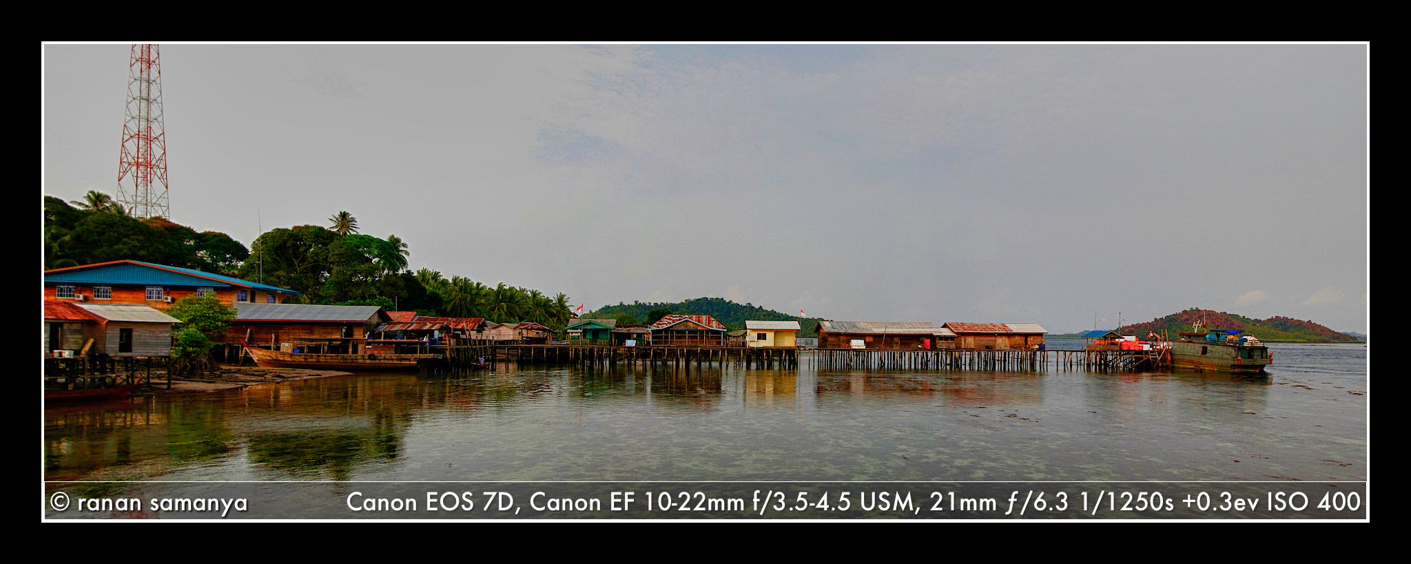 A view of the fisherman's jetty from the passenger jetty. On the far left is the house of the middleman, I believe the richest on the island. This picture is taken from 5 individual frames and stitched with Autopano. You can click on the picture to get a higher resolution image.